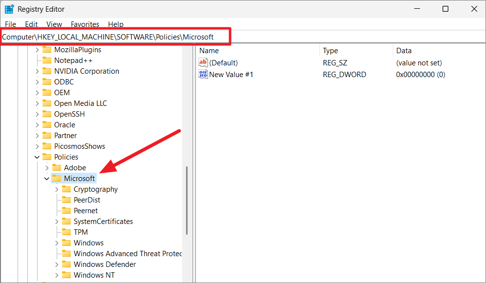 HKEY_LOCAL_MACHINE\SOFTWARE\Policies\Microsoft