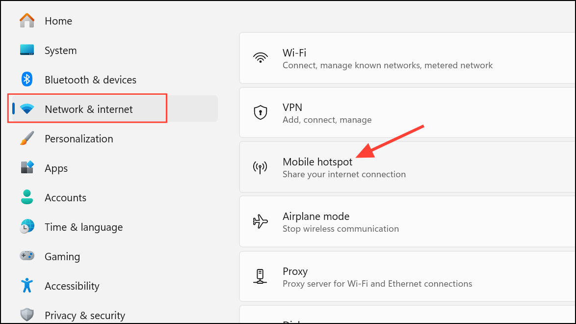 Step 2: Go to Settings > Network & Internet > Mobile hotspot.