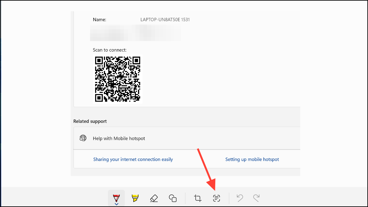 Step 1: If you want to share your Wi-Fi network details, Windows 11 allows you to generate a QR code directly from your network settings (available in recent builds, especially for mobile hotspots).