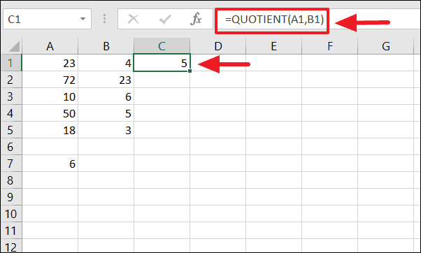 Divide Using the QUOTIENT Function