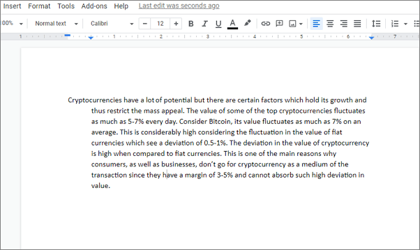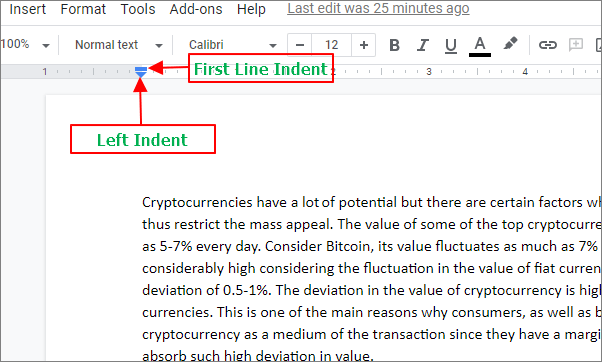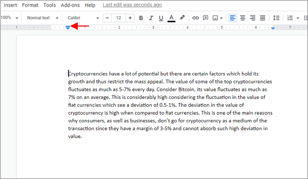 Step 4: Click and drag the Left Indent marker (the triangle) to the right, setting the desired indent for all lines.