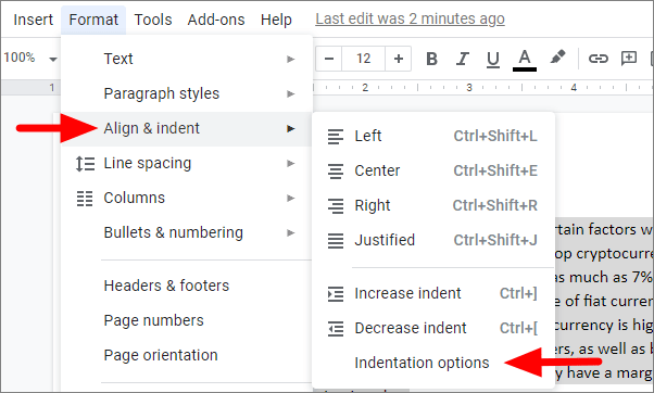Step 3: Hover over the Align & indent option, then select Indentation options from the submenu.