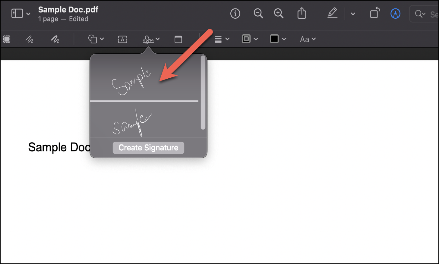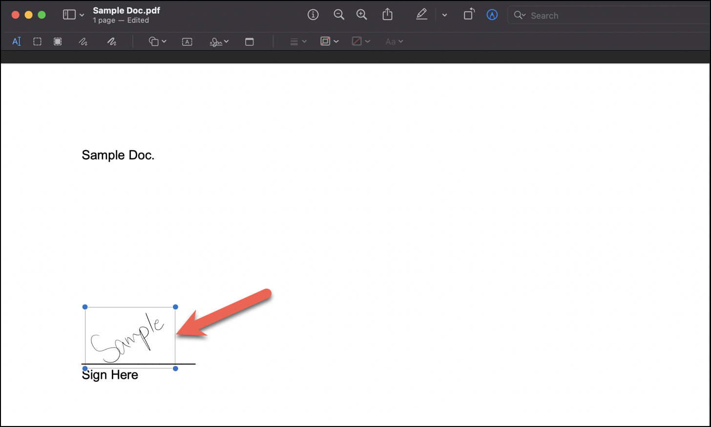 You can now use this signature anytime in the Preview app to sign your documents. Just go to the ‘Sign’ option, locate the signature, click on it and it would automatically place itself on your doc from where you can adjust it according to your need.