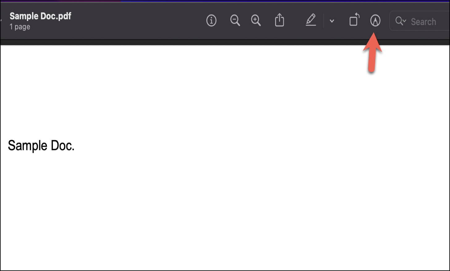 Once the file is open on the Preview app, locate the ‘Show Markup Toolbar’ icon (which looks like a pen) in the top right corner of the screen.