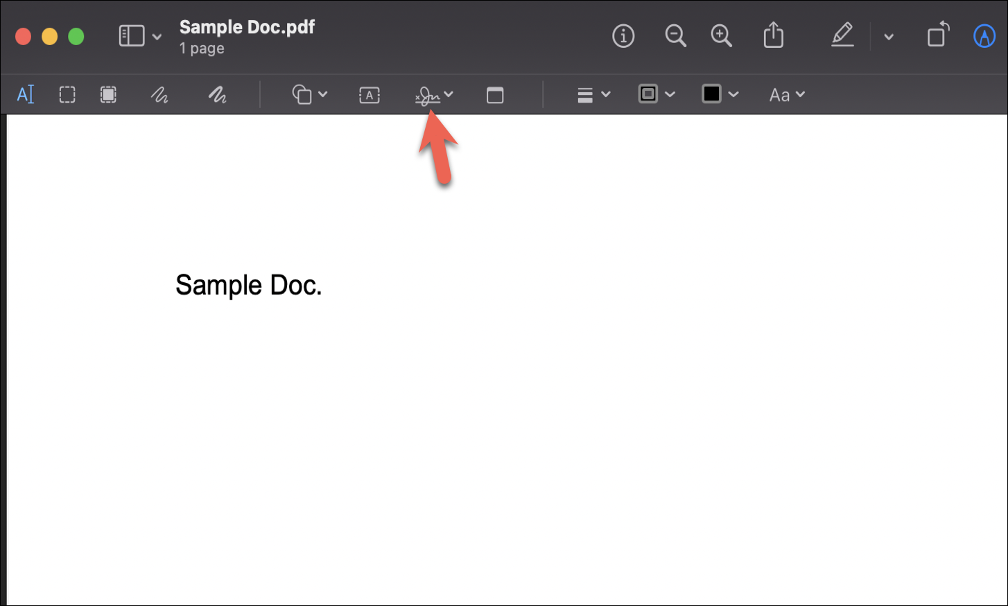 The Markup Toolbar will appear underneath the main toolbar. Locate and click the ‘Sign’ icon.