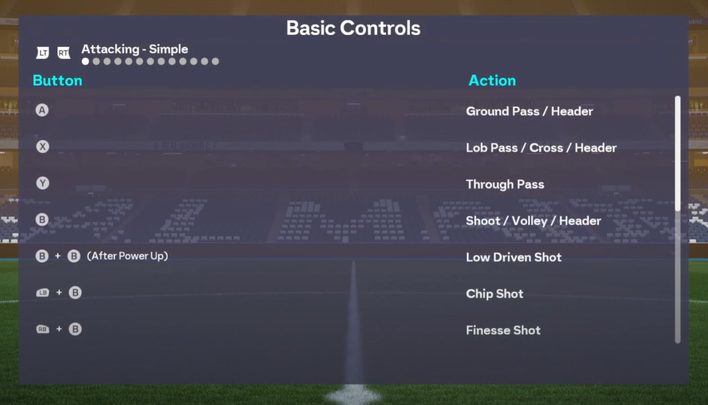 Step 1: As the ball sits up, press shoot to cue the volley — PlayStation: 〇. Xbox: B.