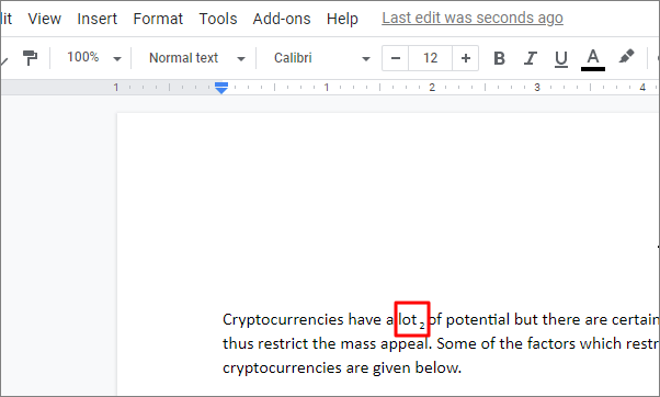 Step 1: Highlight the text in your document that you want to format as subscript.