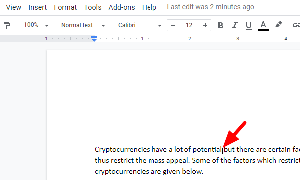 Step 1: Place your cursor at the point in your document where you want to begin typing in subscript.
