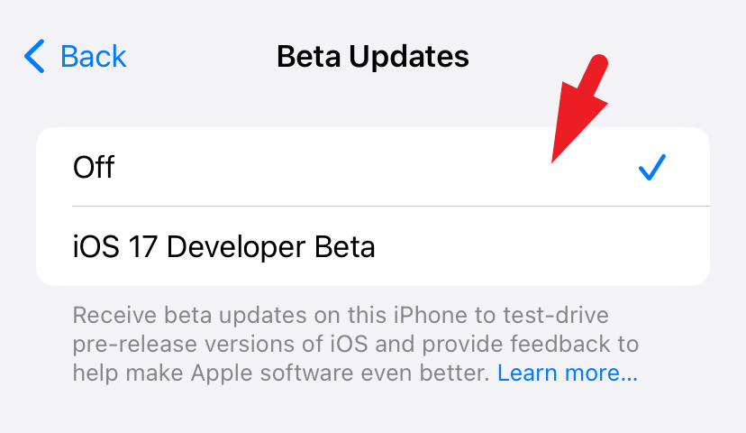 Once you have turned the beta updates 'Off,' you will only receive updates when a public build of iOS 17 is released, and till then, you will stay on the currently installed version.