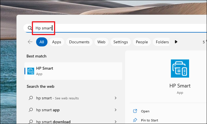 - Once installed, open the HP Smart app by searching for