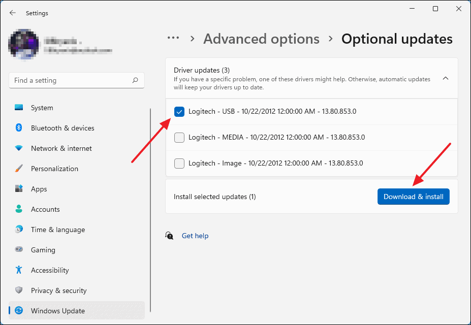 - Select the updates you want to install by checking the boxes next to them, then click on Download & install.