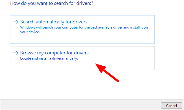 Since you have already download the driver, select the second option, ‘Browse my computer for drivers’.