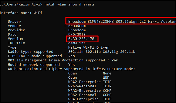 netsh wlan show drivers