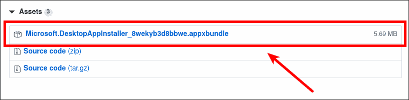 Step 2: Scroll down to the latest release and locate the Assets section. Here, you'll find the .appxbundle file and the source code for the release.