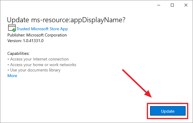 Step 3: When prompted to update the existing App Installer, click on the Update button. This ensures you have the latest version that includes the winget feature.