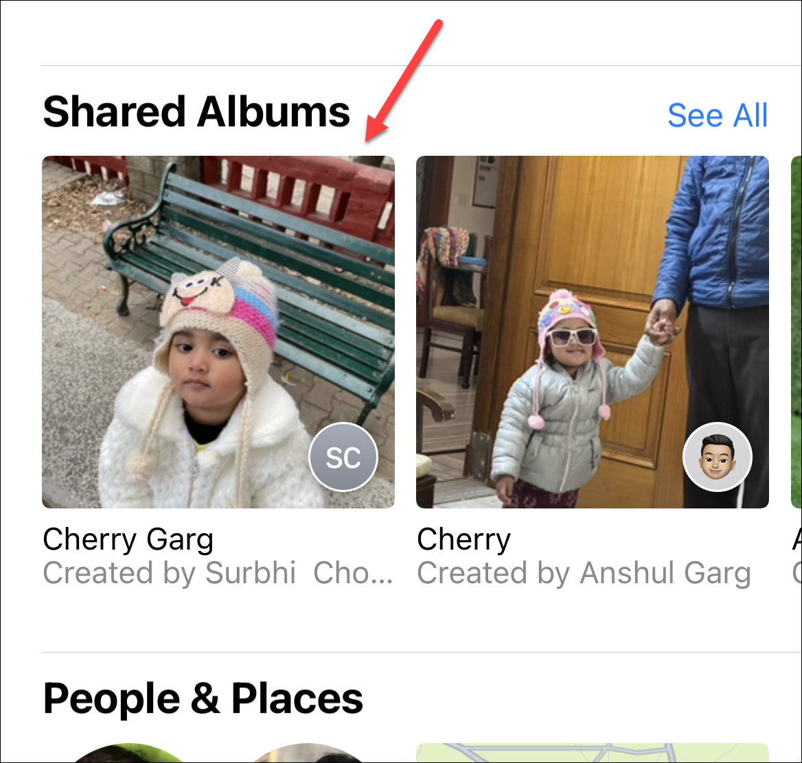 Now, scroll down to the Shared Albums section and tap the shared album that has the photo/ video you want to download.