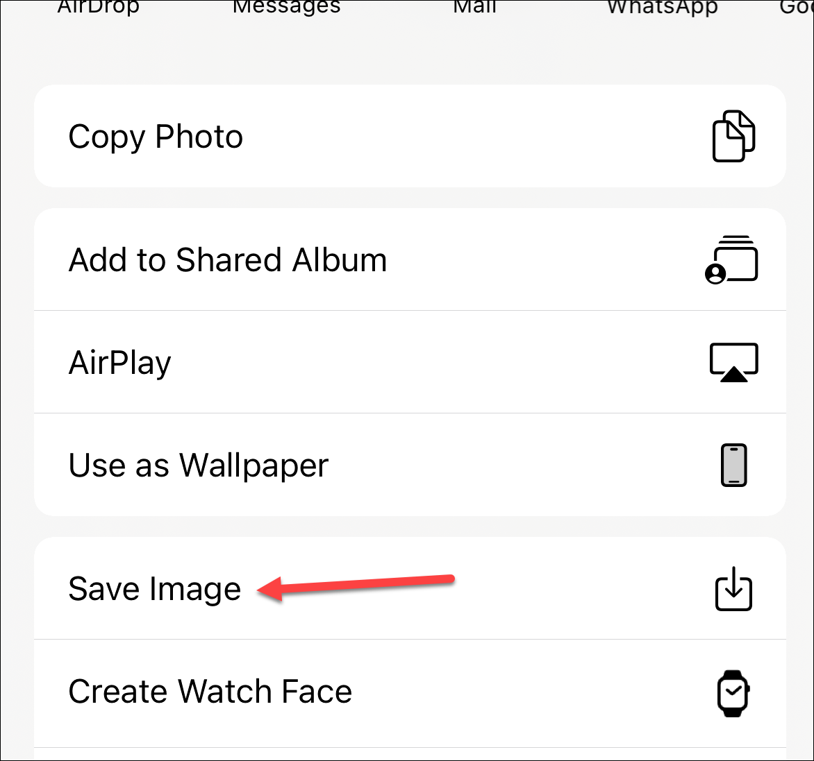 From the menu options, scroll down and tap ‘Save Image’.