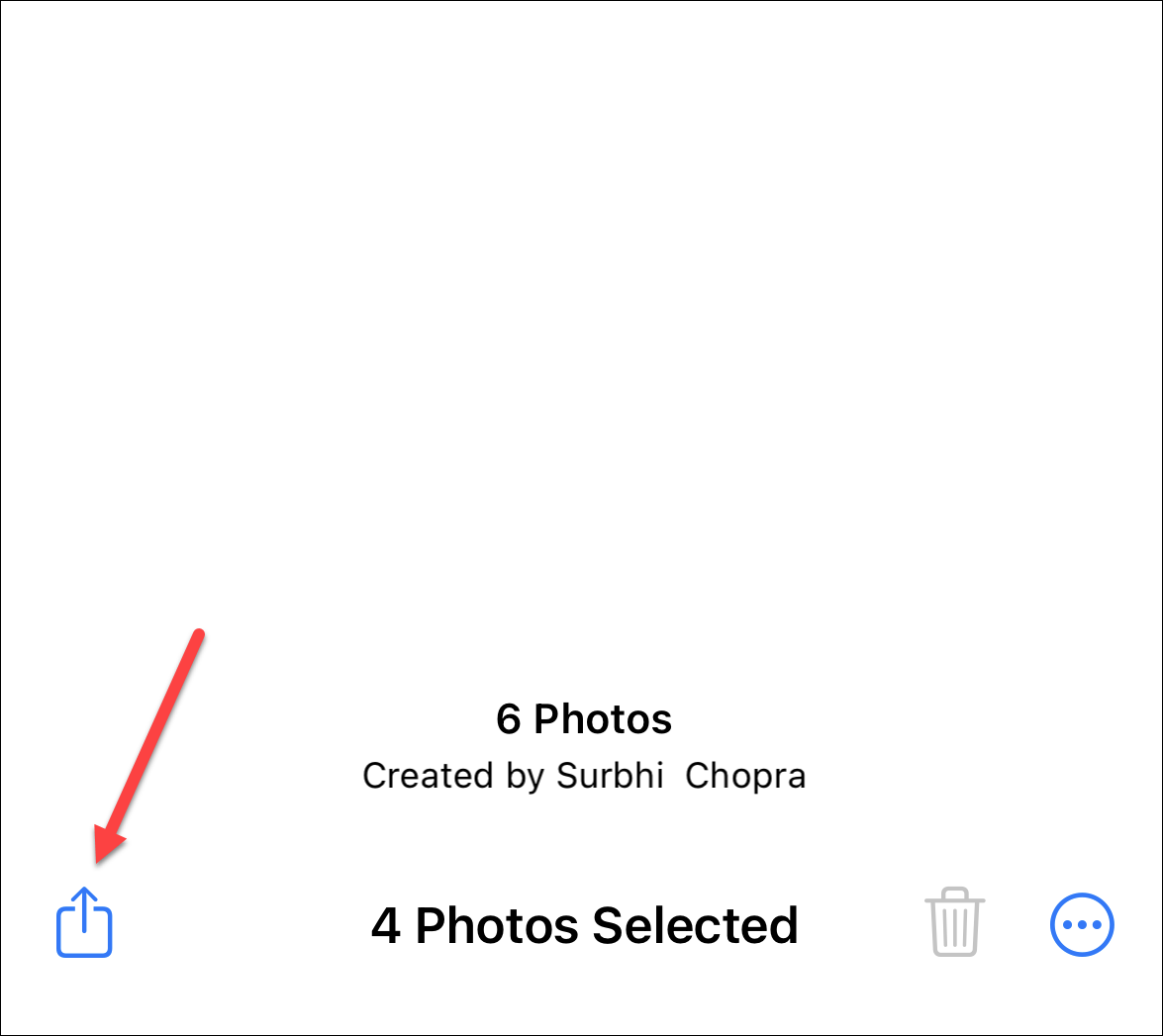 Tap the photos you want to download to select them. Then, tap the ‘Share’ button in the bottom-left corner.