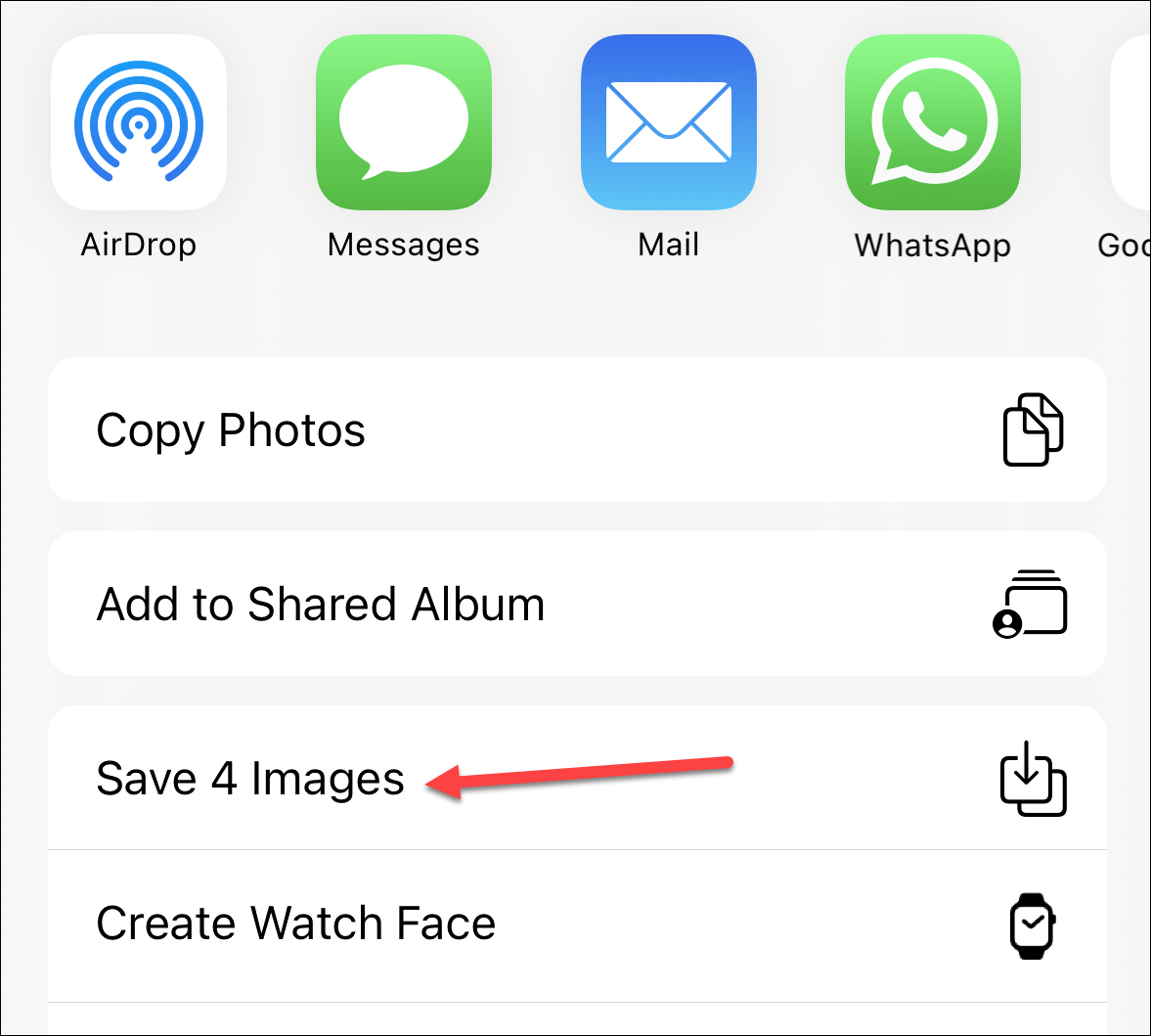 Tap ‘Save [n] images’ from the menu.