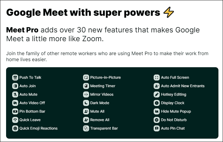 The real difference comes when using the features MES offers. There is a boatload of extra features MES offers that elevates your meeting experience with Google Meet. Now, to be able to use these extra features in the desktop app, you have to buy an MES Pro subscription.