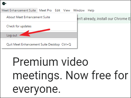 To log out from the MES app instead, go to the Menu bar and click the ‘Meet Enhancement Suite’ menu option.