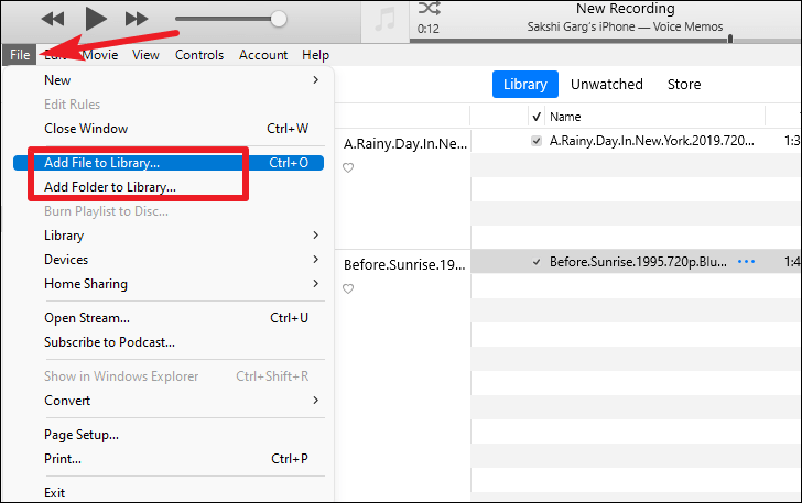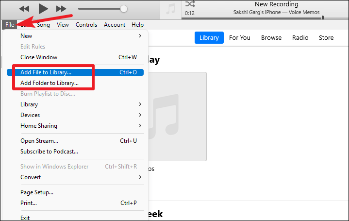 - In iTunes, select File from the menu bar.
