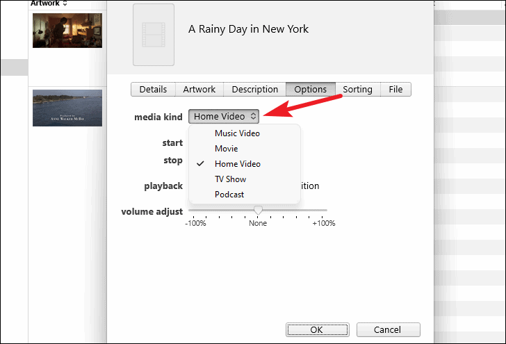 - The videos will appear under the Home Videos section. You can change their media type by right-clicking the video, selecting Video Info, and adjusting the Media Kind under the Options tab.