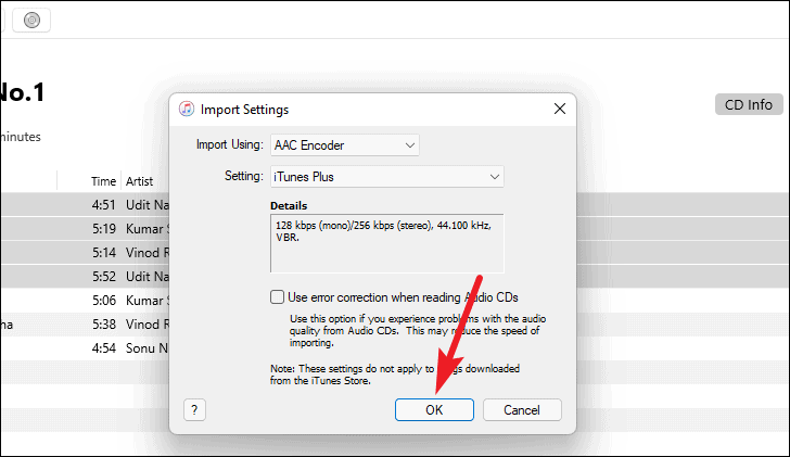 - Click Import CD at the top right corner.