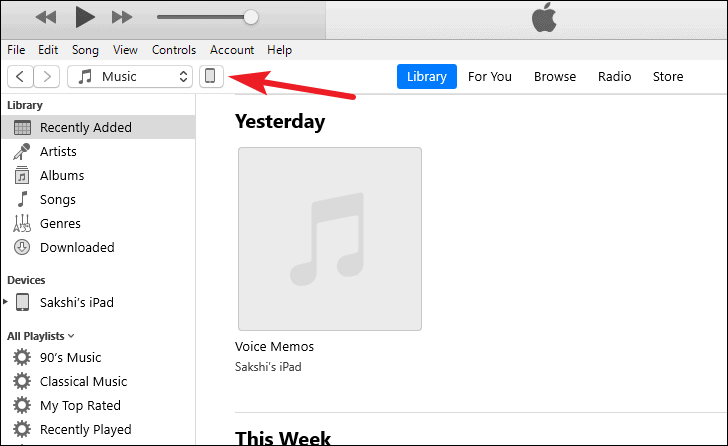 - In iTunes, click on the device icon that appears near the top left corner.
