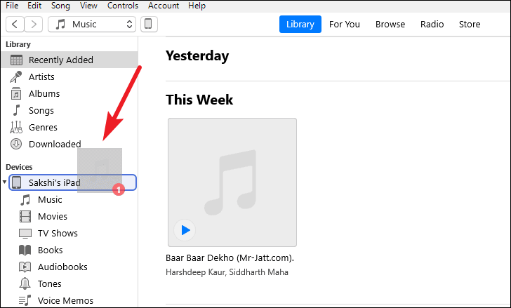 - Select the type of content you want to sync from the left sidebar (e.g., Music, Movies).