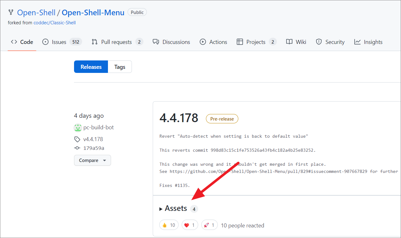 This action will direct you to the Releases page, where all versions of Open Shell are listed. The latest version is typically at the top. Locate the most recent release, move to the ‘Assets’ section, and click to reveal the available download files.