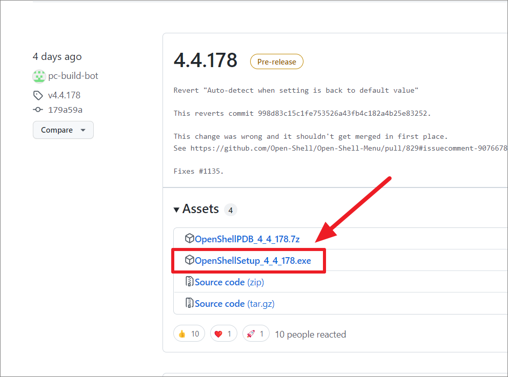 Click on ‘OpenShellSetup_x_x_xxx.exe’ to download the installer directly to your computer. Alternatively, you can download the installer in a compressed (.7z) file and extract it later.