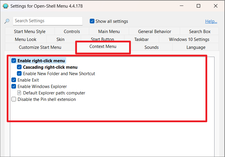 If problems persist, uninstall Open Shell and reinstall the latest version from the official GitHub repository.