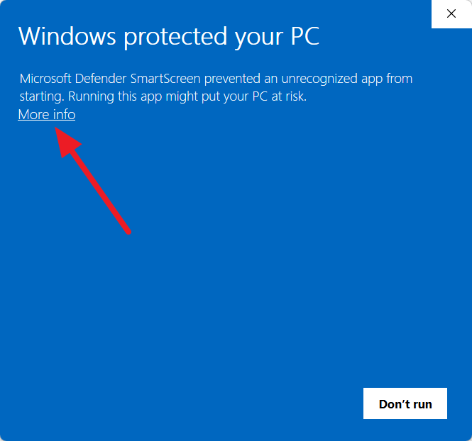 After clicking ‘More info’, select ‘Run anyway’ to proceed with the installation.