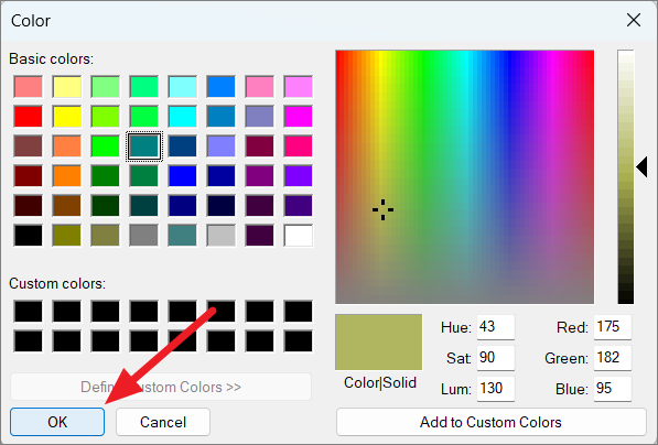 To change the taskbar color or text color, select the corresponding option and click the color box to open the color picker. Choose your desired color and click ‘OK’ to apply.