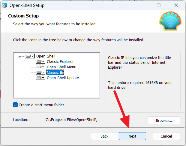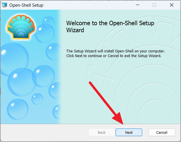 The Open Shell Setup wizard will launch. Click ‘Next’ on the welcome screen to begin.