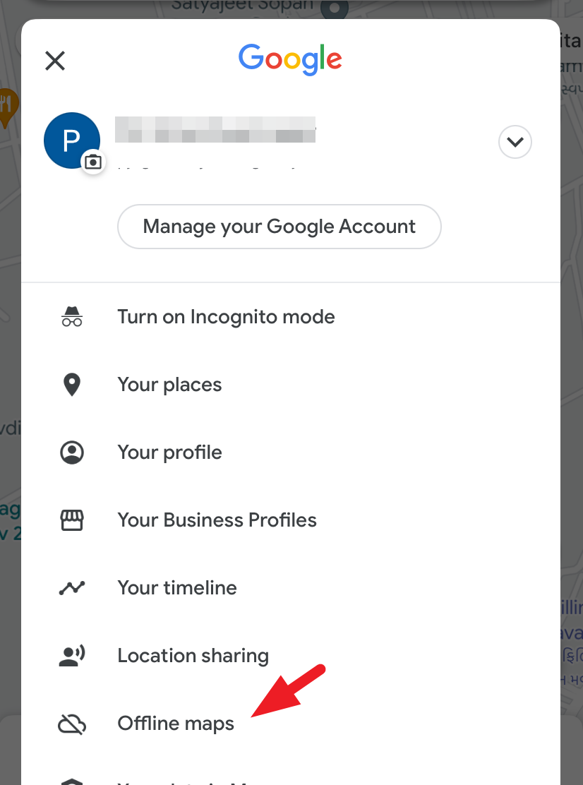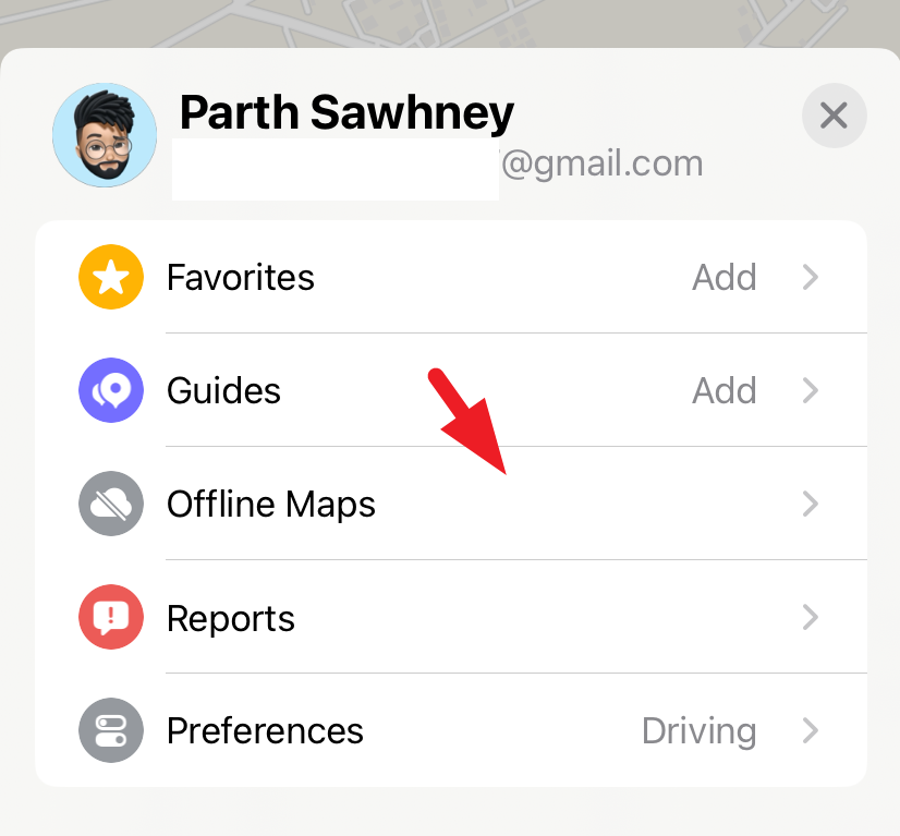 In the overlay window, tap on the 'Offline Maps' option to continue.