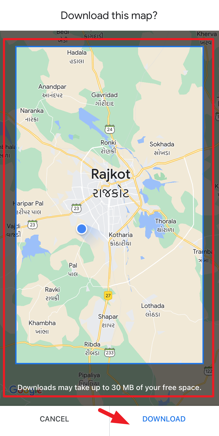 On the next screen, pinch and zoom in/out to place the desired area inside the border and then tap 'Download'.