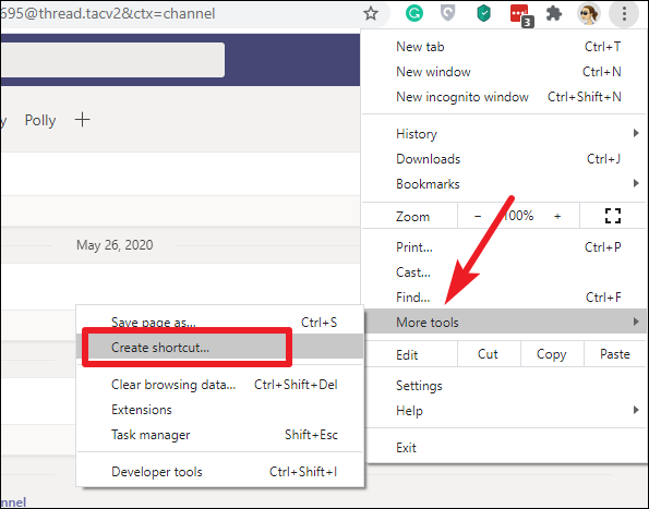 Go to ‘More Tools’ option on the menu, and select ‘Create Shortcut’ from the sub-menu.