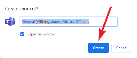 A desktop shortcut for Microsoft Teams web app will appear, clicking which will open it in a separate window giving the experience that mimics that of a desktop app closely.