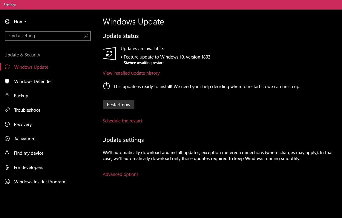 Step 9: Once the update is downloaded and ready, you'll see a Restart now button. Click it to begin the installation of the Windows 10 April 2018 Update on your PC.