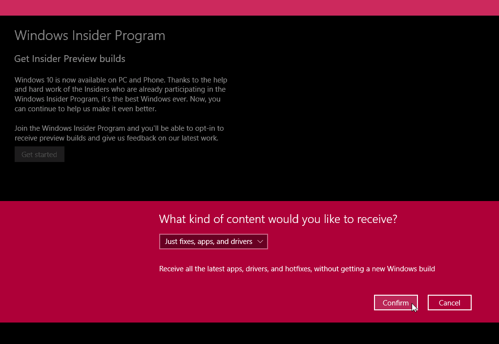 Step 4: After linking your account, you'll be prompted to select the type of updates you wish to receive. Select the Just fixes, apps, and drivers option and click on Confirm.