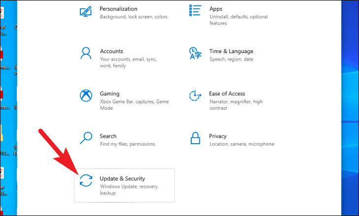 Then, click on the ‘Update & Security’ tab from the left sidebar present on the ‘Settings’ window.