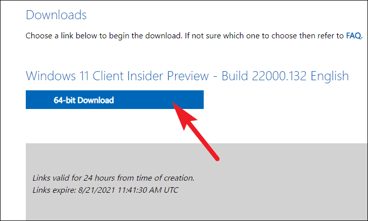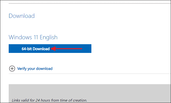 Finally, the actual ‘Download’ section will show up on the screen with a link to download the Windows 11 ISO. Click on the ’64-Bit Download’ button to initiate the download.