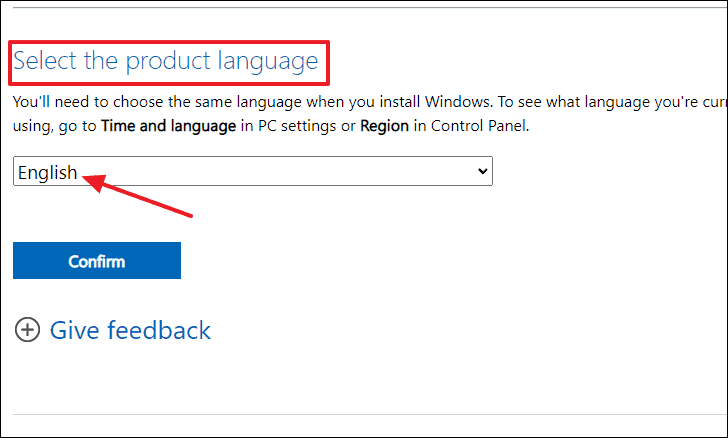 Once selected, click on the ‘Confirm’ button situated right under the drop-down menu. This will reveal the ‘Select the product language’ section.