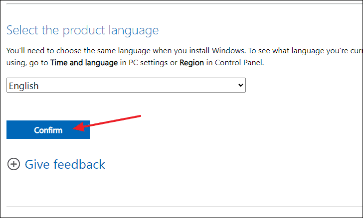 Then, select your preferred language using the drop-down menu available and click on the ‘Confirm’ button present under the section.