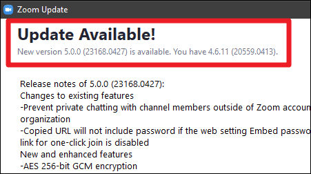 Zoom 5.0 is an essential update that every Zoom user must install. Zoom will enforce GCM encryption to all meetings created on Zoom after May 30th. If you don’t have Zoom 5.0 or above version installed on your computer or mobile, you won’t be able to join a Zoom meeting at all by June 2020.