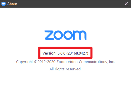 If the version number displayed on Zoom ‘About’ screen is less than version 5.0, then you need to manually check for updates in the app to get the latest Zoom update.
