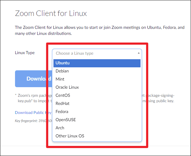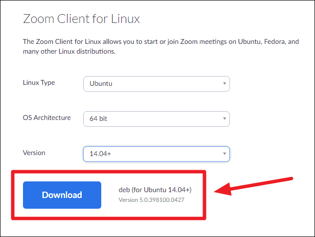 After selecting your Linux type, go on to select your OS Architecture and OS Version. Then, finally hit the ‘Download’ button. The Zoom version will be displayed next to the download button, it should be version 5.0 or above.