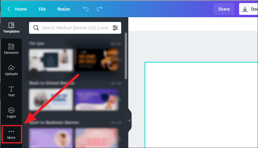 Once the designing options on the left margin are visible, click the ellipsis ‘More’ icon with three horizontal dots at the end of the list.